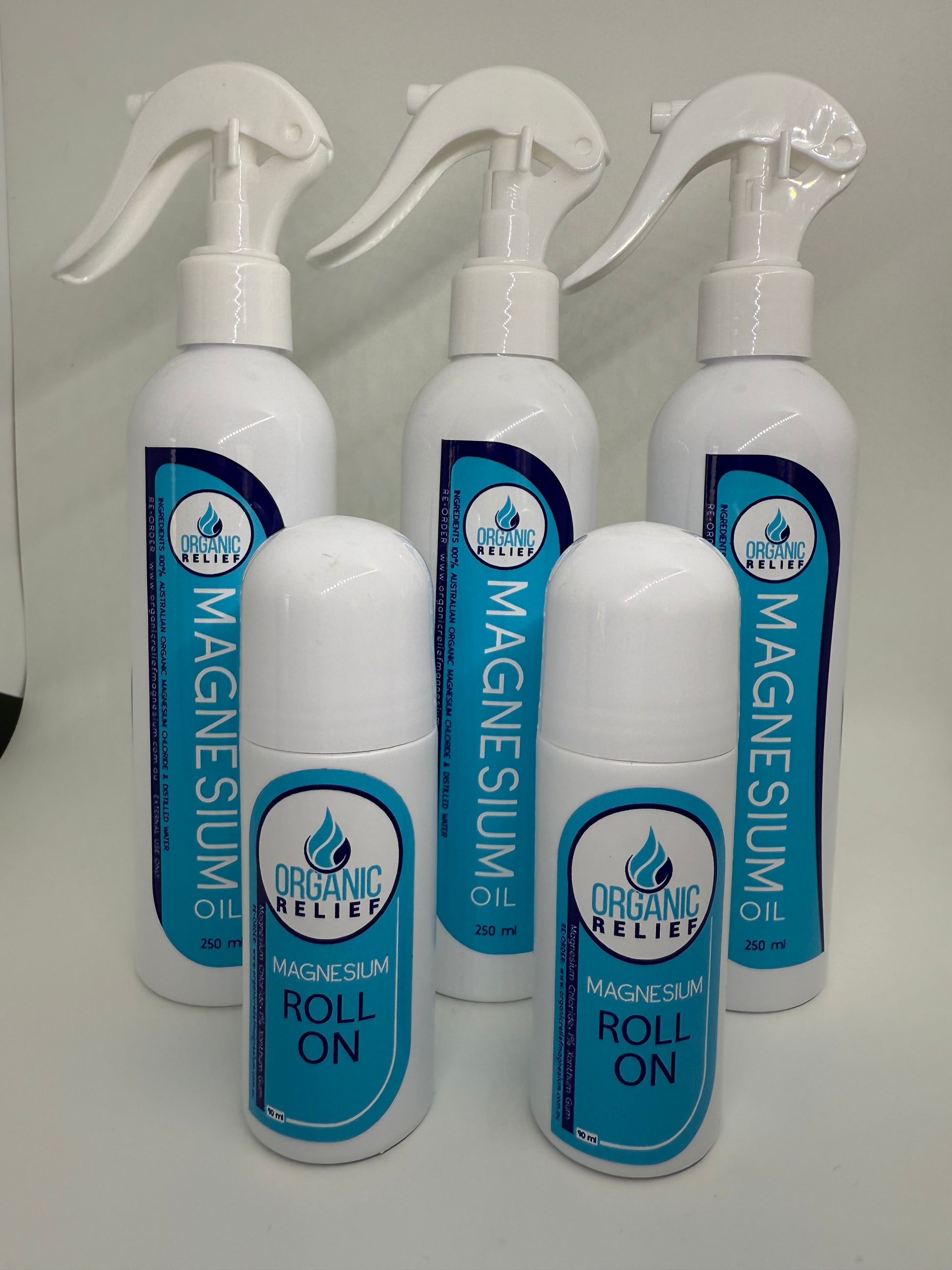 Magnesium Oil Spray 250ml & Roll On's 90ml Qty 3 x Spray 2 x Roll On